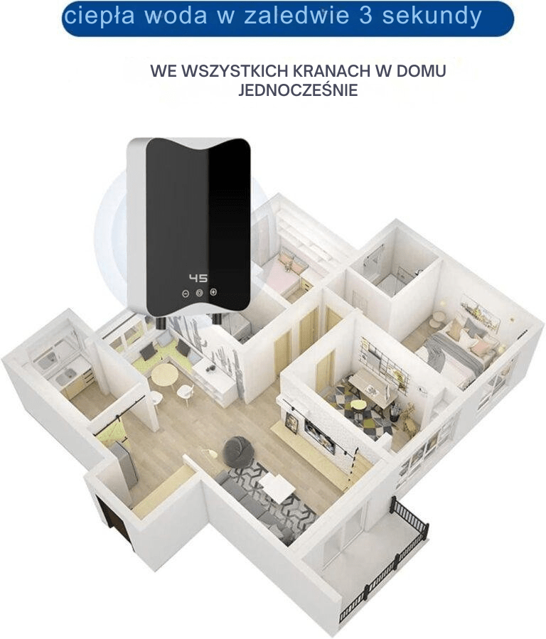 Ten najnowszej generacji podgrzewacz wody został zaprojektowany tak, aby zapewnić ciepłą wodę w zaledwie 3 sekundy, całkowicie eliminując czas oczekiwania typowy dla tradycyjnych podgrzewaczy zbiornikowych. Dzięki zaawansowanej technologii nie wymaga on magazynowania: woda jest podgrzewana bezpośrednio podczas przepływu, zapewniając ciągłe dostarczanie bez przerw. Kompaktowa i nowoczesna konstrukcja sprawia, że nadaje się on do każdego pomieszczenia w domu, zwalniając cenne miejsce i zmniejszając zużycie energii związane z utrzymaniem temperatury wody.