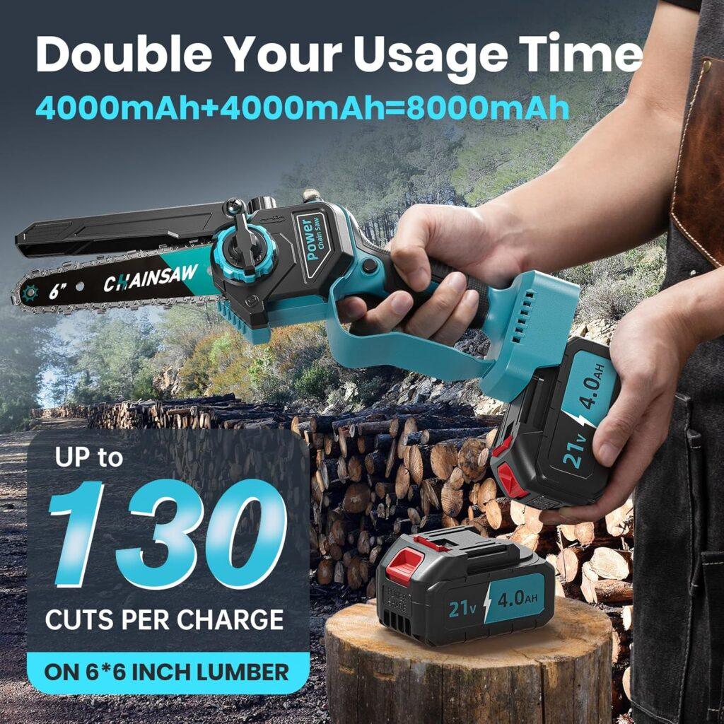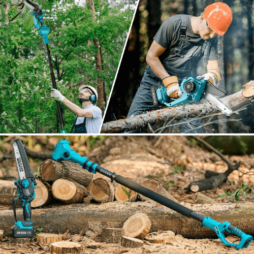 2-in-1-Elektrokettensäge, leistungsstärker als ein Verbrennungsmotor, mit automatischer Kettenschmierung und Kettenspanner, zwei Akkus und verlängertem Stiel