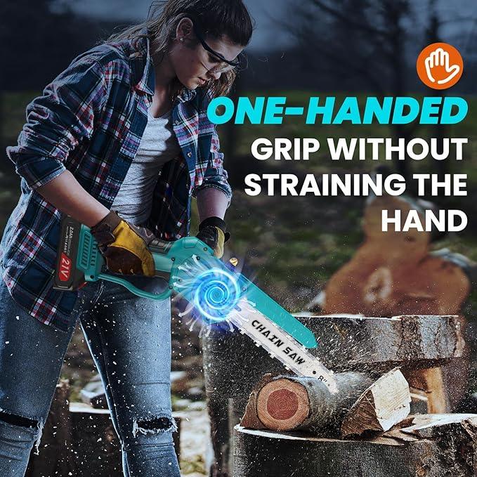Sie ist mit einem leistungsstarken bürstenlosen Motor ausgestattet und eignet sich perfekt zum Beschneiden von Bäumen und Sträuchern, zum Schneiden von Brennholz und vielem mehr.
