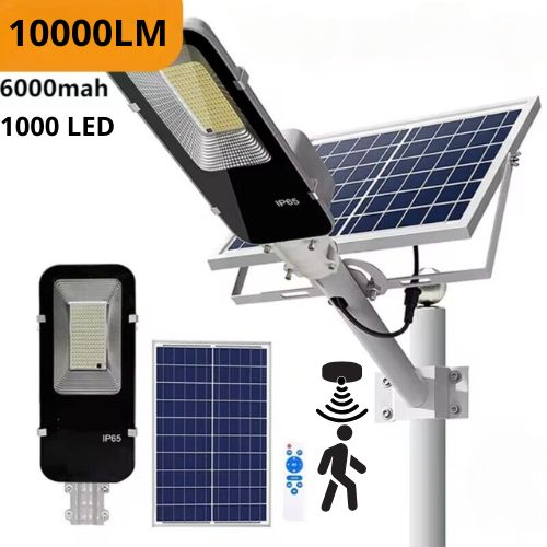 Ο φωτισμός του δρόμου με 1000 LED και 10000 lumens ισχύος, που επαναφορτίζεται δωρεάν χάρη στον ενσωματωμένο ηλιακό συλλέκτη. Χειριστείτε το από απόσταση με το τηλεχειριστήριο και ελέγξτε το σπίτι, το πάρκινγκ και τους εξωτερικούς χώρους χάρη στον αισθητήρα κίνησης.