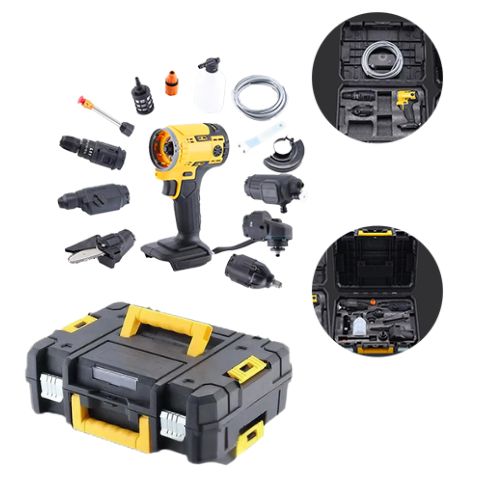 Този комплект е идеален за експерти и начинаещи. Предлага всички функции. Можете да превключвате между бормашина, отвертка, трион, ножовка и шлифовъчна машина в зависимост от работата, която трябва да извършите.